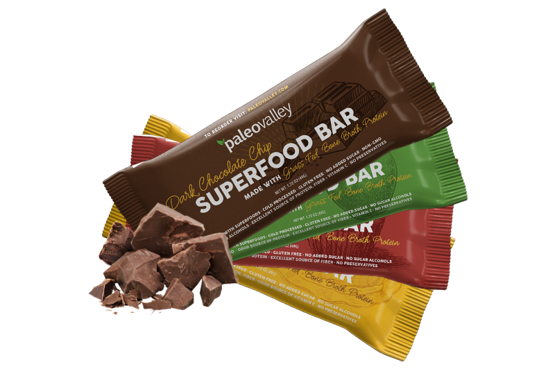 Not only are Paleovalley Superfood Bars the perfect on-the-go snack, they also make a great addition to any dessert recipe. Packed with 8+ organic superfoods these bars are healthy, delicious, and as convenient as it gets.