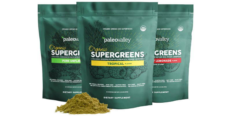 - 2 scoops Paleovalley Supergreens, Tropical Flavor